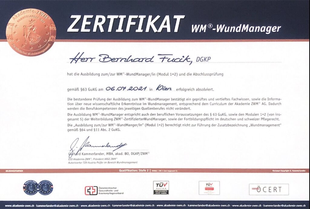 Unser Wundmanagement basiert unter anderem auf den wissenschaftlichen anerkannten Konzepten von Gerhard Kammerlander – einem der führenden Experten der modernen Wundheilkunde im deutschsprachigen Raum.